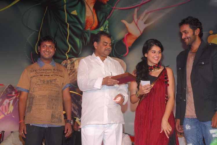 The audio launch of Manchu Vishnu’s ‘Vastadu Naa Raju’ was held at Layola College in Vijayawada on December 10th, 2010. K Raghavendra Rao, Dr Mohan Babu, Budha Prasad, Devineni Nehru, Lagadapati Rajagopal, Yarlagadda Lakshmi Prasad, Vishnu, Tapsee and others witnessed the grand event. Mohan Babu released the audio CDs and presented its first copy to K Raghavendra Rao.