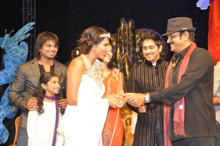 'Anaganaga Oka Dheerudu' audio launch was held on Saturday at Hotel Novotel, Hyderabad. The event has been a grand affair with many of Tollywood bigwigs attended this event and wished for the success of Anaganaga O Dheerudu. Lakshmi Manchu is making her debut into Tolloywood with this film. Siddharth and Shruthi Hasan are playing in lead roles.