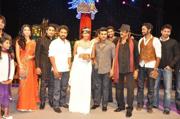 'Anaganaga Oka Dheerudu' audio launch was held on Saturday at Hotel Novotel, Hyderabad. The event has been a grand affair with many of Tollywood bigwigs attended this event and wished for the success of Anaganaga O Dheerudu. Lakshmi Manchu is making her debut into Tolloywood with this film. Siddharth and Shruthi Hasan are playing in lead roles.