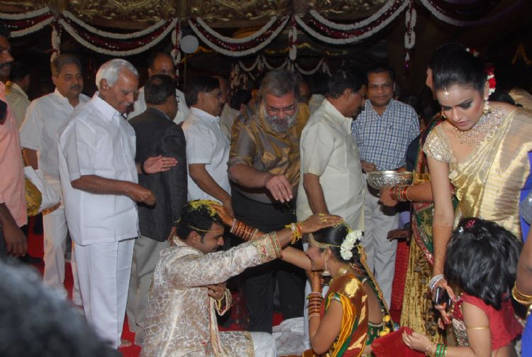 Producer Ashwini Dutt daughter Swapna Dutt is married to Prasad Varma on December 19th Sunday evening at Hitex in Hyderabad.Celebrities from the Telugu film industry attended the marriage and blessed the newly married couple.
