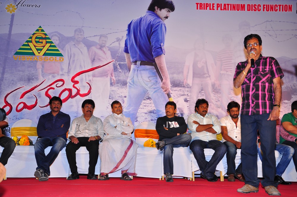 Raviteja's yet to be released Mirapakai audio triple platinum disc presentation was held at Taj Deccan. Noted film directors Ramgopal Varma, Puri Jagannath, VV Vinayak graced the function. Congress leader Tulasi Reddy gave away the discs to the film unit.