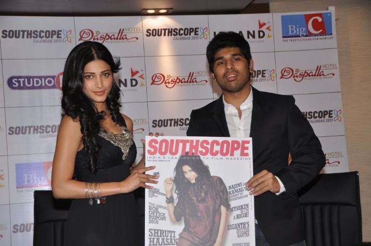 South Scope 2011 Calendar launch event held at Daspalla hotel today. Shriya, Shruthi Hassan, Allu Arjun, Rana Daggubati, Nagachaitanya, Allu Sirish grace this event.
