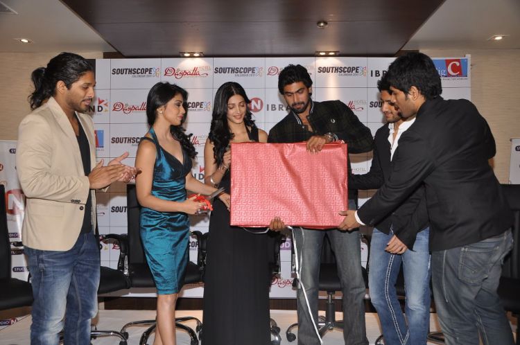 South Scope 2011 Calendar launch event held at Daspalla hotel today. Shriya, Shruthi Hassan, Allu Arjun, Rana Daggubati, Nagachaitanya, Allu Sirish grace this event.