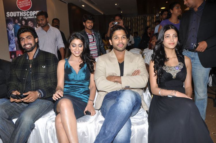 South Scope 2011 Calendar launch event held at Daspalla hotel today. Shriya, Shruthi Hassan, Allu Arjun, Rana Daggubati, Nagachaitanya, Allu Sirish grace this event.