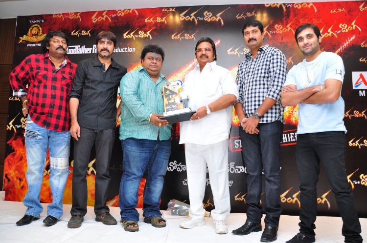 The Triple Platinum Disc Function of Srikanth – Vimala Raman starrer ‘Ranga The Donga’ was held at Dasapalla Hotel in Hyderabad today. The function was attended by Dr Dasari Narayana Rao, Srikanth, Tarun, GV, CR Manohar, Ramesh Puppala, Chakri, Chalapathi Rao, Chitram Sreenu, Prabhu, etc. The Triple Platinum Disc Shields were presented to cast and crew by Dasari and Tarun.