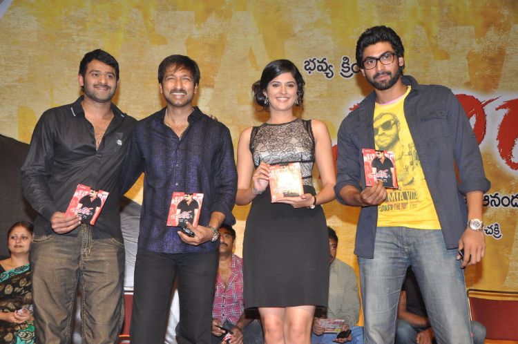 Gopi Chand, Deeksha Seth's starrer Wanted movie audio release event held at Ramanaidu Studio. Gopi Chand, Deeksha Seth, Ram Gopal Varma, Prabhas, Rana, Jayasudha, Puri Jagannadh, Gopi, Chakri, Srinu Vaitla graced the event. The first copy of CD has been released by Prabhas and presented to Jayasudha.