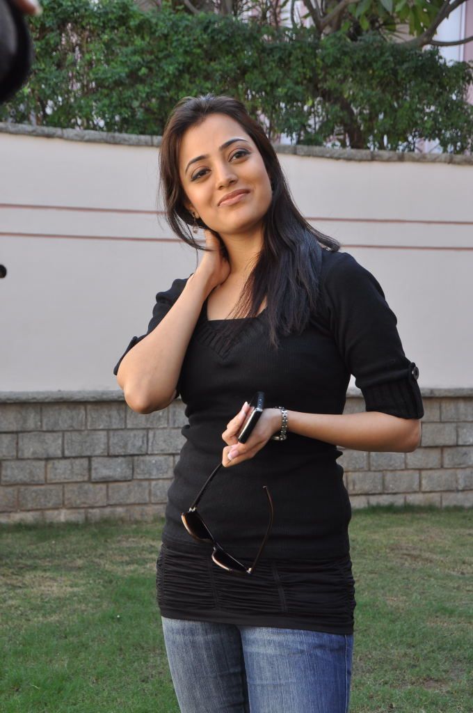 Nisha Agarwal poses for photographers at Film Chambers in Hyderabad