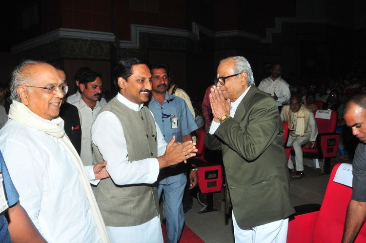 Veteran filmmaker Dr. K Balachander was honoured with prestigious ANR National Award yesterday at Silpa Kala Vedika . CM Kiran Kumar Reddy, ANR, Veerappa Moily and other dignitaries presented him a Memento and a cash prize of Rs. 5 lakhs. Akkineni family members like Nagarjuna, Amala, Naga Susheela, Naga Chaitanya, Akhil, Sumanth and others were present. Indian Idol Sreeram Chandra was the prime attraction of the day and he entertained the audience with some old Telugu songs.
