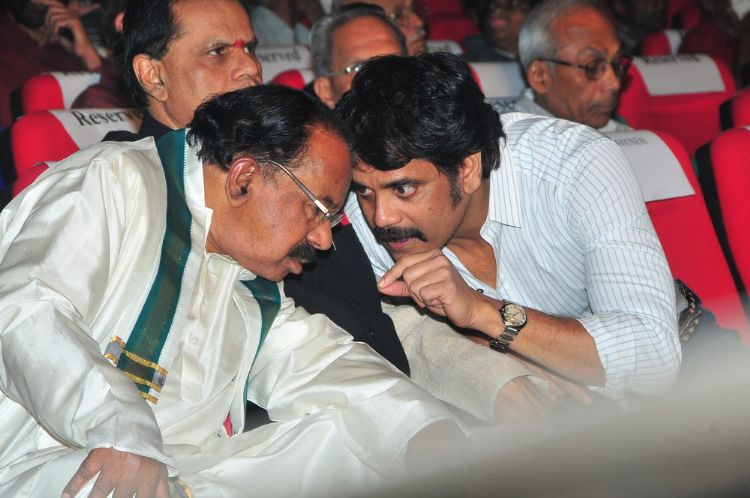 Veteran filmmaker Dr. K Balachander was honoured with prestigious ANR National Award yesterday at Silpa Kala Vedika . CM Kiran Kumar Reddy, ANR, Veerappa Moily and other dignitaries presented him a Memento and a cash prize of Rs. 5 lakhs. Akkineni family members like Nagarjuna, Amala, Naga Susheela, Naga Chaitanya, Akhil, Sumanth and others were present. Indian Idol Sreeram Chandra was the prime attraction of the day and he entertained the audience with some old Telugu songs.