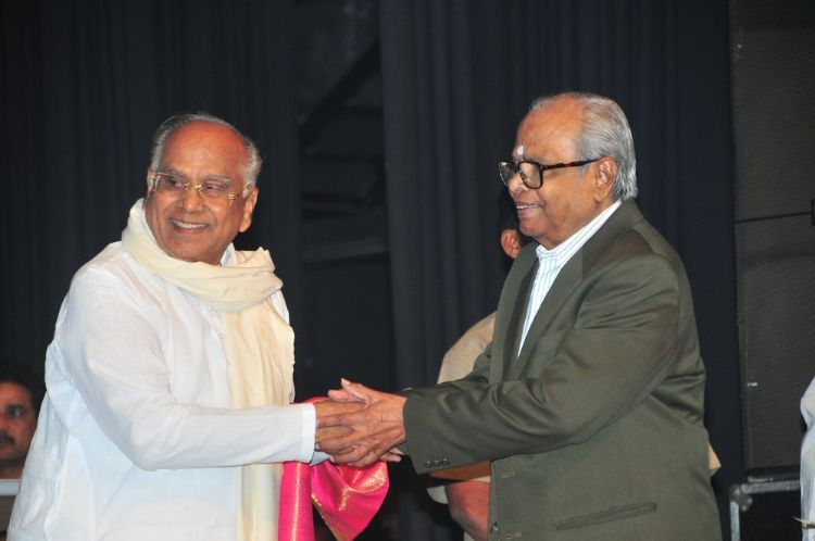 Veteran filmmaker Dr. K Balachander was honoured with prestigious ANR National Award yesterday at Silpa Kala Vedika . CM Kiran Kumar Reddy, ANR, Veerappa Moily and other dignitaries presented him a Memento and a cash prize of Rs. 5 lakhs. Akkineni family members like Nagarjuna, Amala, Naga Susheela, Naga Chaitanya, Akhil, Sumanth and others were present. Indian Idol Sreeram Chandra was the prime attraction of the day and he entertained the audience with some old Telugu songs.