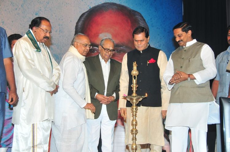Veteran filmmaker Dr. K Balachander was honoured with prestigious ANR National Award yesterday at Silpa Kala Vedika . CM Kiran Kumar Reddy, ANR, Veerappa Moily and other dignitaries presented him a Memento and a cash prize of Rs. 5 lakhs. Akkineni family members like Nagarjuna, Amala, Naga Susheela, Naga Chaitanya, Akhil, Sumanth and others were present. Indian Idol Sreeram Chandra was the prime attraction of the day and he entertained the audience with some old Telugu songs.