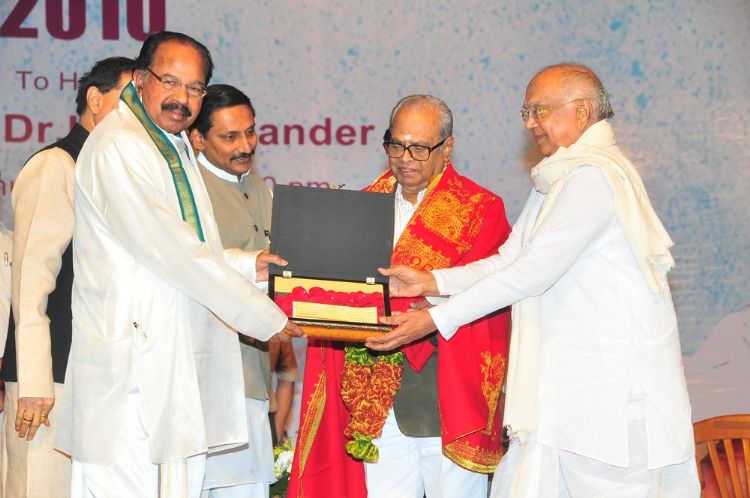 Veteran filmmaker Dr. K Balachander was honoured with prestigious ANR National Award yesterday at Silpa Kala Vedika . CM Kiran Kumar Reddy, ANR, Veerappa Moily and other dignitaries presented him a Memento and a cash prize of Rs. 5 lakhs. Akkineni family members like Nagarjuna, Amala, Naga Susheela, Naga Chaitanya, Akhil, Sumanth and others were present. Indian Idol Sreeram Chandra was the prime attraction of the day and he entertained the audience with some old Telugu songs.