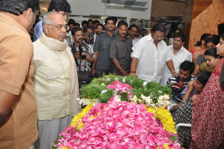 Tollywood bids tearful adieu to EVV: Shocked film fraternity thronged the residence of well known film producer-director EVV Satyanarayana, who died of a massive cardiac arrest in a city hospital late on Friday night, to pay their last respects.