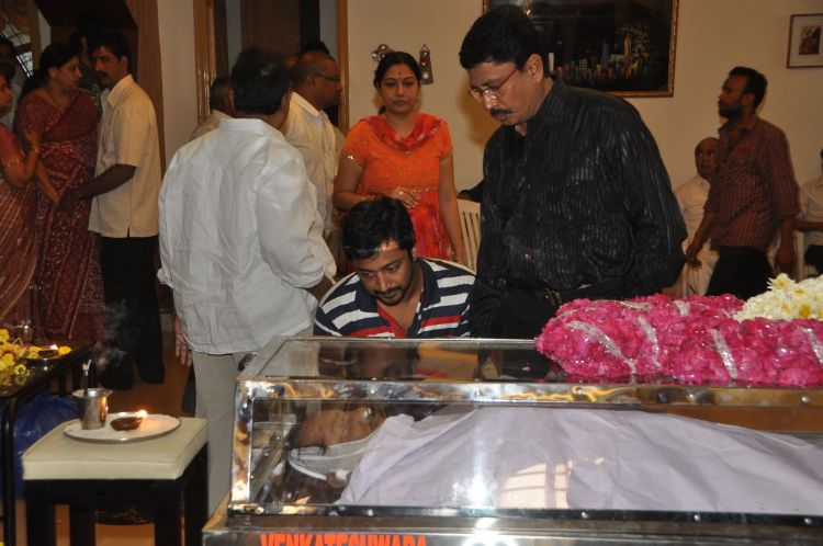 Tollywood bids tearful adieu to EVV: Shocked film fraternity thronged the residence of well known film producer-director EVV Satyanarayana, who died of a massive cardiac arrest in a city hospital late on Friday night, to pay their last respects.