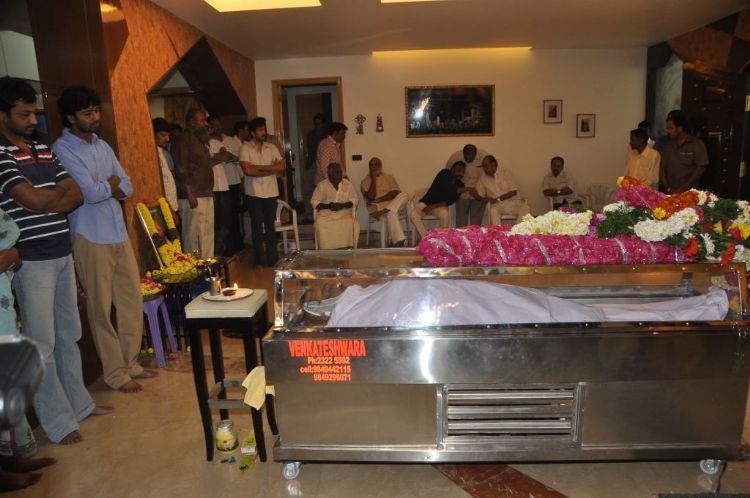 Tollywood bids tearful adieu to EVV: Shocked film fraternity thronged the residence of well known film producer-director EVV Satyanarayana, who died of a massive cardiac arrest in a city hospital late on Friday night, to pay their last respects.