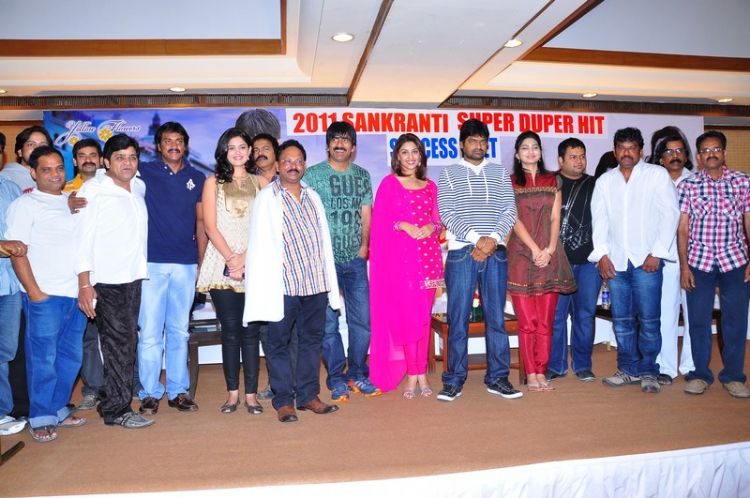 Ravi Teja, Deeksha Seth, Richa Gangopadyaya at Mirapakay success meet held at hotel Taj Deccan. Ramesh Reddy, Ram Prasad, Ali, Suneel, Thaman, Goutham Raju, Brahmaji too attended this event.