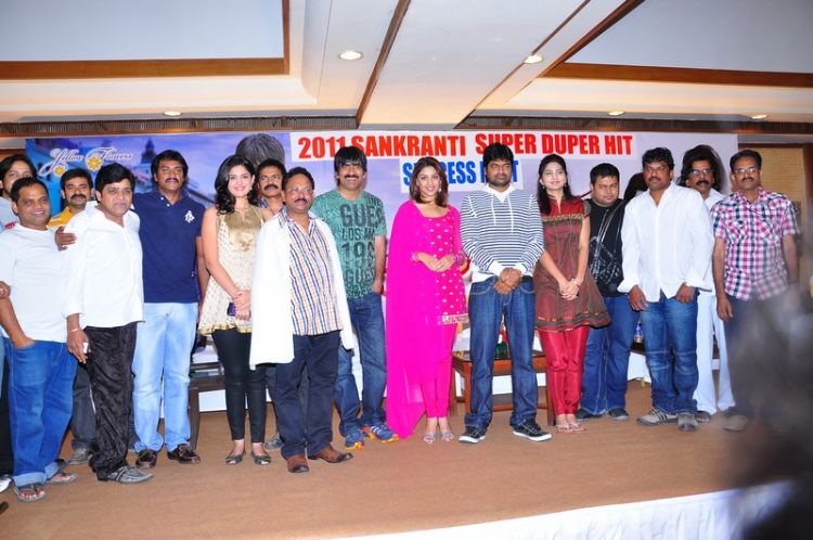 Ravi Teja, Deeksha Seth, Richa Gangopadyaya at Mirapakay success meet held at hotel Taj Deccan. Ramesh Reddy, Ram Prasad, Ali, Suneel, Thaman, Goutham Raju, Brahmaji too attended this event.