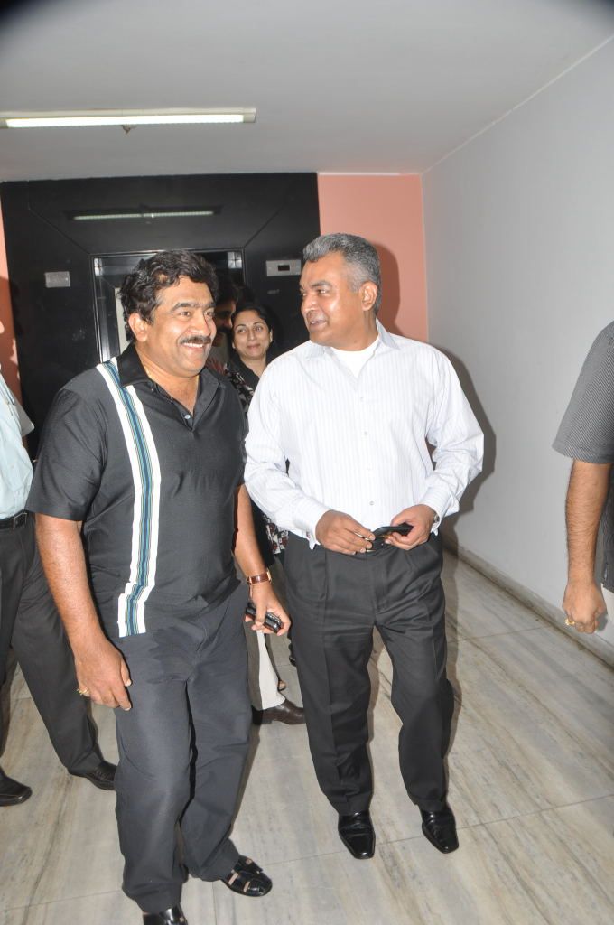 Akkineni Nagarjuna along with his family members attended Gaganam premiere show held at Prasad Labs on Wednesday.