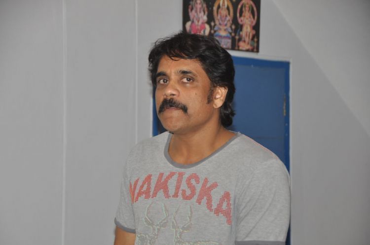 Akkineni Nagarjuna along with his family members attended Gaganam premiere show held at Prasad Labs on Wednesday.