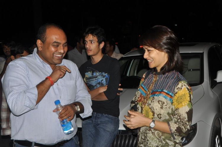 Akkineni Nagarjuna along with his family members attended Gaganam premiere show held at Prasad Labs on Wednesday.