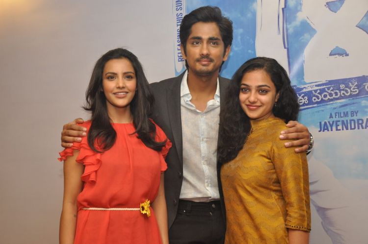 Hero Siddharth’s upcoming bilingual film 180’s first look was revealed today at a press meet held in Taj Banjara. In this film Nithya Menon and Priya Anand are playing the female lead roles. Director Jayendra has shot several ad films for years and making his forays into commercial film making.
