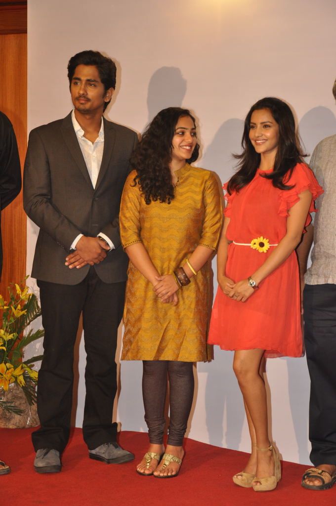 Hero Siddharth’s upcoming bilingual film 180’s first look was revealed today at a press meet held in Taj Banjara. In this film Nithya Menon and Priya Anand are playing the female lead roles. Director Jayendra has shot several ad films for years and making his forays into commercial film making.