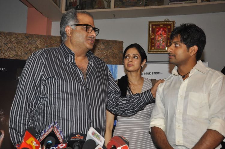 Sridevi along with her husband Boney Kapoor watched the premeir show of Gowtham Menon's bi-lingual film Erragulabeelu in Hyderabad at a special screening arranged in her honour.