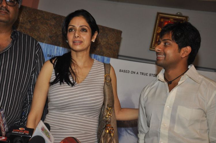 Sridevi along with her husband Boney Kapoor watched the premeir show of Gowtham Menon's bi-lingual film Erragulabeelu in Hyderabad at a special screening arranged in her honour.