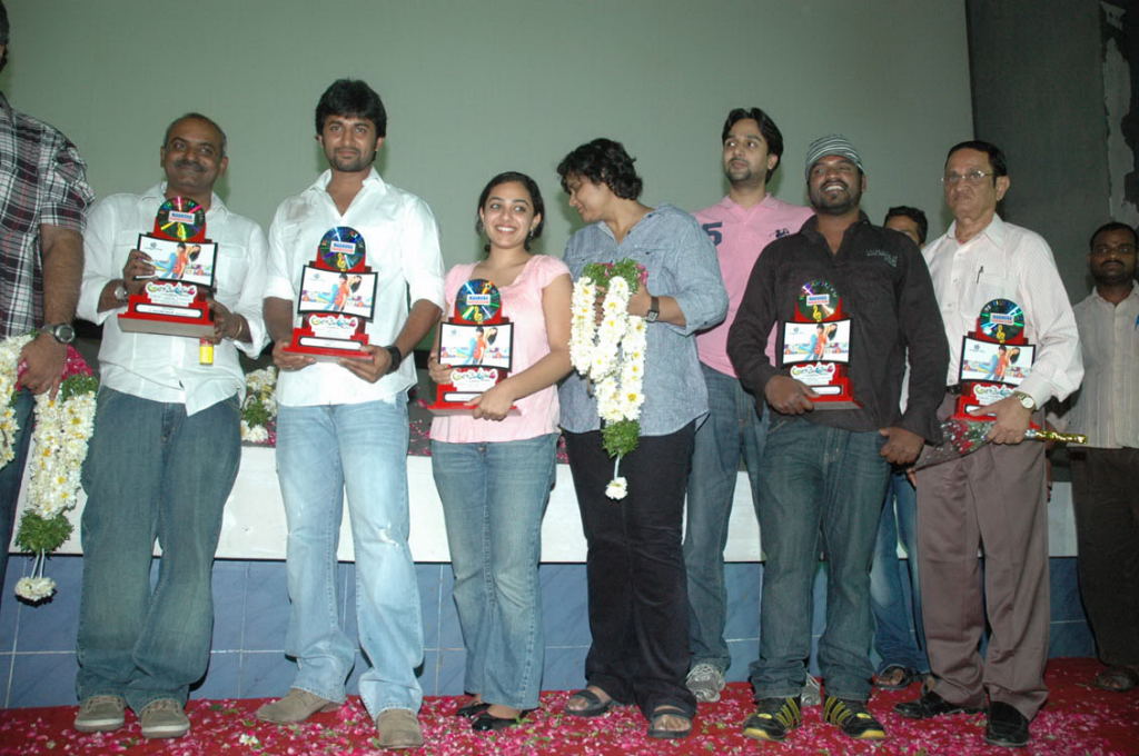 Sensational hit movie Ala Modalaindi celebrates triple platinum disc celebration at Hyderabad. Film's lead pair Nani, Nitya Menon, director Nandini Reddy, producer KL Damodar Prasad and the films crew attended the event.