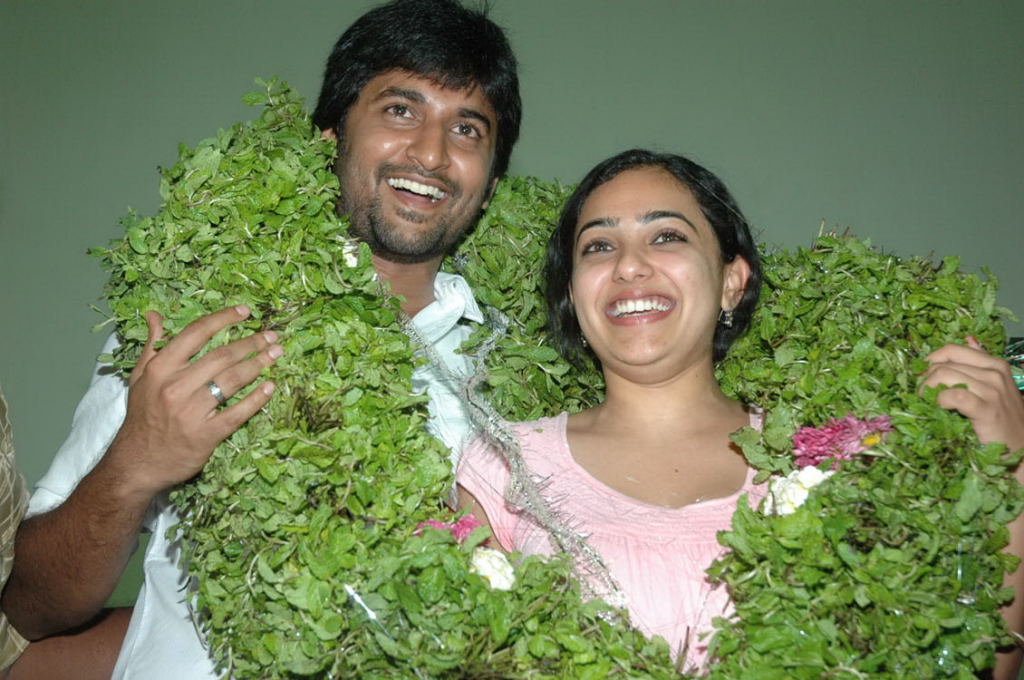 Sensational hit movie Ala Modalaindi celebrates triple platinum disc celebration at Hyderabad. Film's lead pair Nani, Nitya Menon, director Nandini Reddy, producer KL Damodar Prasad and the films crew attended the event.