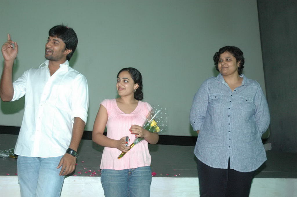 Sensational hit movie Ala Modalaindi celebrates triple platinum disc celebration at Hyderabad. Film's lead pair Nani, Nitya Menon, director Nandini Reddy, producer KL Damodar Prasad and the films crew attended the event.