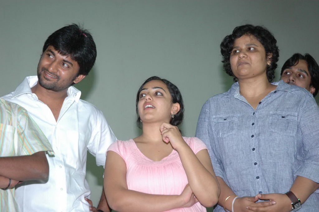 Sensational hit movie Ala Modalaindi celebrates triple platinum disc celebration at Hyderabad. Film's lead pair Nani, Nitya Menon, director Nandini Reddy, producer KL Damodar Prasad and the films crew attended the event.