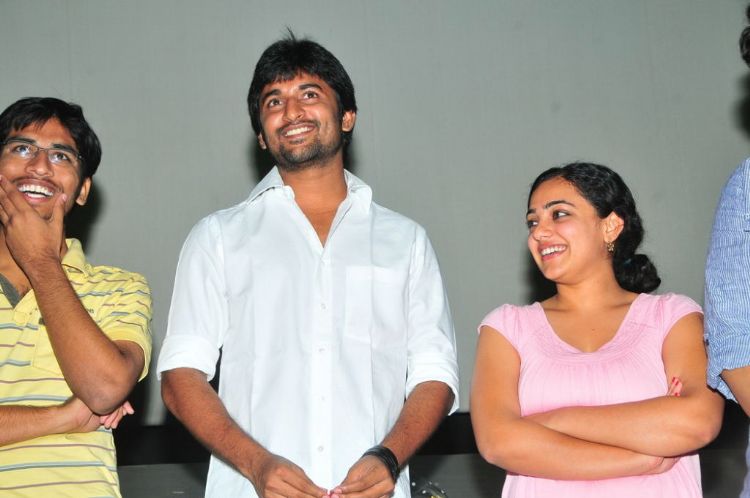 Sensational hit movie Ala Modalaindi celebrates triple platinum disc celebration at Hyderabad. Film's lead pair Nani, Nitya Menon, director Nandini Reddy, producer KL Damodar Prasad and the films crew attended the event.