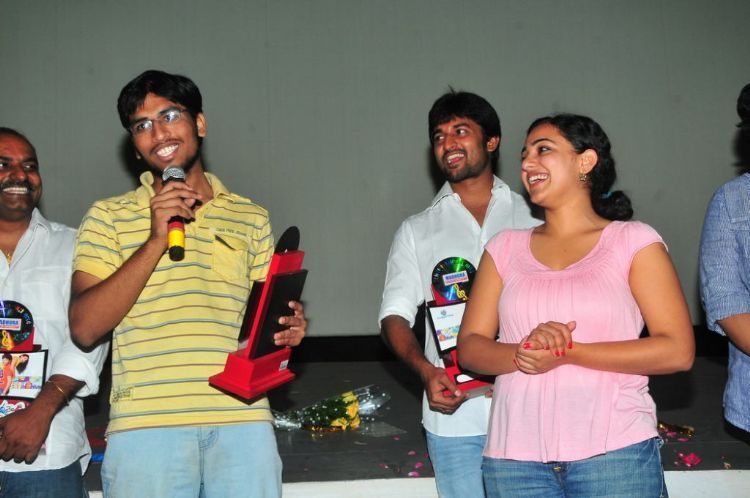 Sensational hit movie Ala Modalaindi celebrates triple platinum disc celebration at Hyderabad. Film's lead pair Nani, Nitya Menon, director Nandini Reddy, producer KL Damodar Prasad and the films crew attended the event.