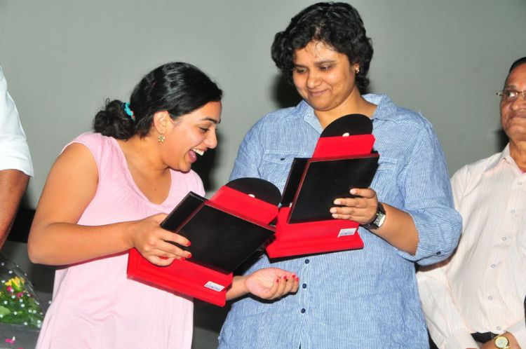 Sensational hit movie Ala Modalaindi celebrates triple platinum disc celebration at Hyderabad. Film's lead pair Nani, Nitya Menon, director Nandini Reddy, producer KL Damodar Prasad and the films crew attended the event.