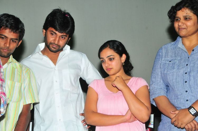 Sensational hit movie Ala Modalaindi celebrates triple platinum disc celebration at Hyderabad. Film's lead pair Nani, Nitya Menon, director Nandini Reddy, producer KL Damodar Prasad and the films crew attended the event.