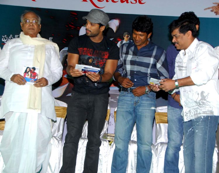Puneeth Rajkumar's Jackie movie audio release event held at hotel Das Palla. Along with Punith, ANR, Allu Arjun, Kaikala Satyanarayana, Sudharani, Nageswararao, Ramarao, Veera Sankar, Mehar Ramesh grace this event. The first copy of CD was released by Allu Arjun and handed it to Dr.Akkineni Nageswara Rao.