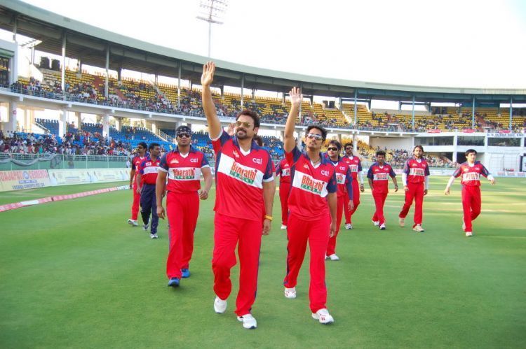 With the passion for cricket rising to a crescendo this season, the star-studded celebrity cricket league curtain raiser match at the Dr. Y.S. Rajasekhara Reddy ACA-VDCA grounds proved to be a perfect event for all fans and cricket lovers to watch their favourite stars in action. People descended on the stadium in thousands to cheer for their superstars at the match between Mumbai Heroes and South Superstars on Saturday.