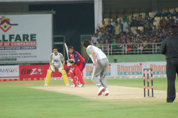 With the passion for cricket rising to a crescendo this season, the star-studded celebrity cricket league curtain raiser match at the Dr. Y.S. Rajasekhara Reddy ACA-VDCA grounds proved to be a perfect event for all fans and cricket lovers to watch their favourite stars in action. People descended on the stadium in thousands to cheer for their superstars at the match between Mumbai Heroes and South Superstars on Saturday.