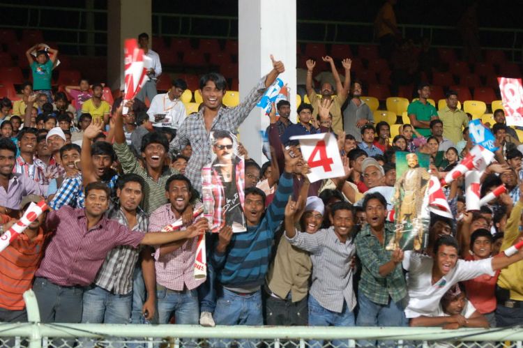 With the passion for cricket rising to a crescendo this season, the star-studded celebrity cricket league curtain raiser match at the Dr. Y.S. Rajasekhara Reddy ACA-VDCA grounds proved to be a perfect event for all fans and cricket lovers to watch their favourite stars in action. People descended on the stadium in thousands to cheer for their superstars at the match between Mumbai Heroes and South Superstars on Saturday.