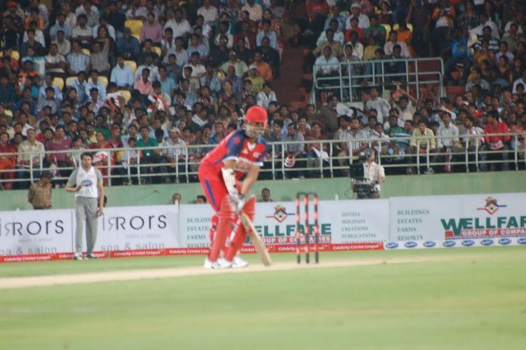 With the passion for cricket rising to a crescendo this season, the star-studded celebrity cricket league curtain raiser match at the Dr. Y.S. Rajasekhara Reddy ACA-VDCA grounds proved to be a perfect event for all fans and cricket lovers to watch their favourite stars in action. People descended on the stadium in thousands to cheer for their superstars at the match between Mumbai Heroes and South Superstars on Saturday.