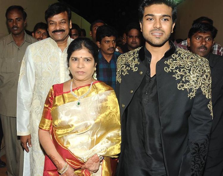 Chiranjeevi along with his wife Surekha, son Ram Charan arriving at wedding venue. The who's who of entire telugu film industry has turned up for the wedding of Allu Arjun and Sneha Reddy's marriage held at Hitex, Madhapur in Hyderabad on Sunday.