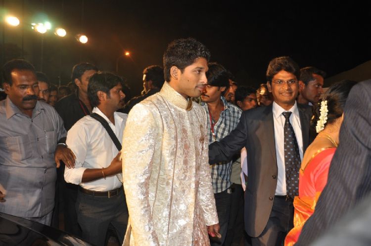 The glittering wedding venue of Allu Arjun and Sneha Reddy at Hitex has been thronged by fans and invitees.