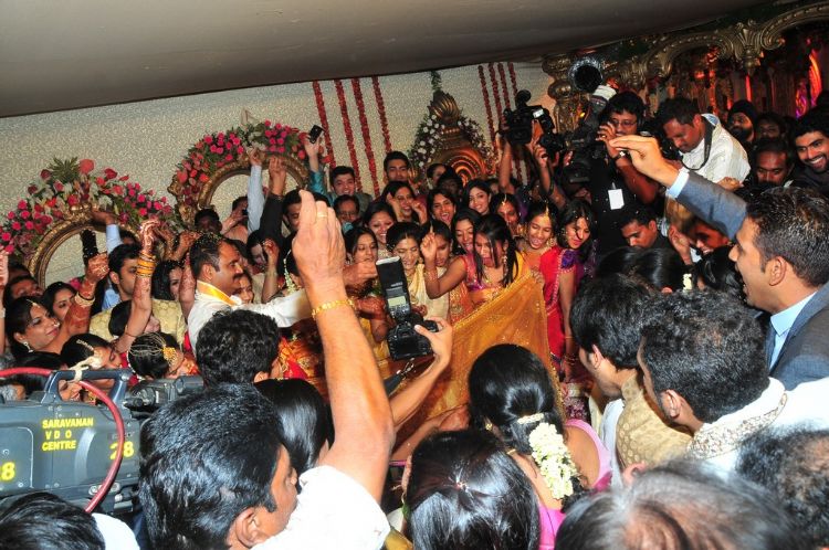 The glittering wedding venue of Allu Arjun and Sneha Reddy at Hitex has been thronged by fans and invitees.