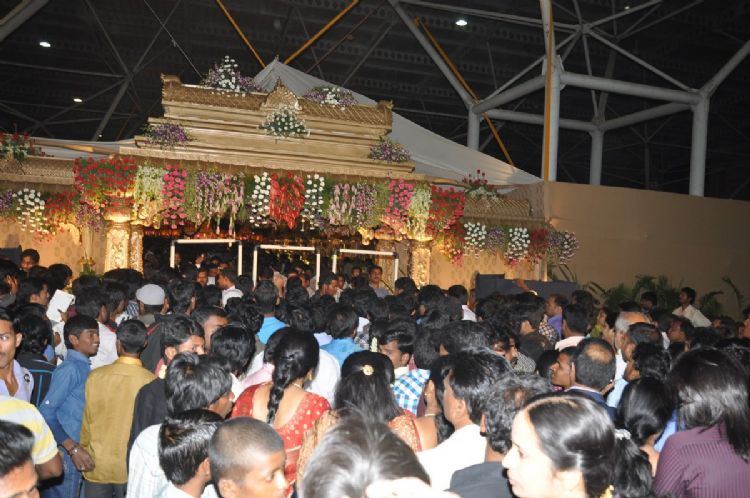 The glittering wedding venue of Allu Arjun and Sneha Reddy at Hitex has been thronged by fans and invitees.