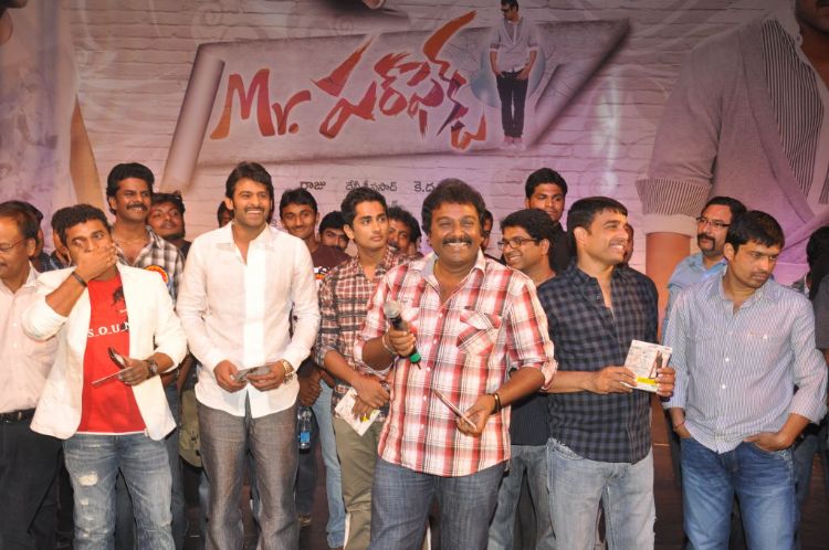 Prabhas starrer film Mr.Perfect audio launch was held at CBIT campus, Hyderabad on Saturday. Actors Siddharth, Navdeep, director VV Vinayak, Singer Baba Sehgal, Music director Devi Sri Prasad, Producer DIl Raju attended the event.