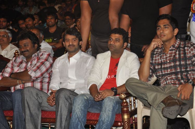 Prabhas starrer film Mr.Perfect audio launch was held at CBIT campus, Hyderabad on Saturday. Actors Siddharth, Navdeep, director VV Vinayak, Singer Baba Sehgal, Music director Devi Sri Prasad, Producer DIl Raju attended the event.