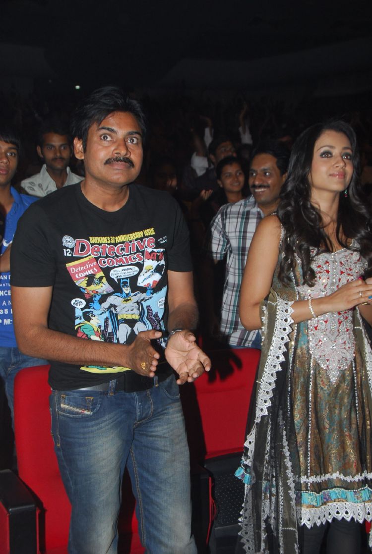 Pawan Kalyan’a ‘Teenmaar’ audio was released on Monday at Shilpakala Vedika. The show was hosted by Ali and Suma. Perccussionist Sivamani mesmerized the audience with his wonderful performance. MP Botsa Jhansi released the first copy of CD and handed it over to Pawan Kalyan. Minister Botsa Satyanarayana, Allu Aravind, Nagababu, Jayant Paranje, Trisha, Kirti Karbhanda, Manisharma, Jayanan Vinsent, Bhaskara Bhatla and Paruchuri Venkateswara Rao include among the others who attended the event.