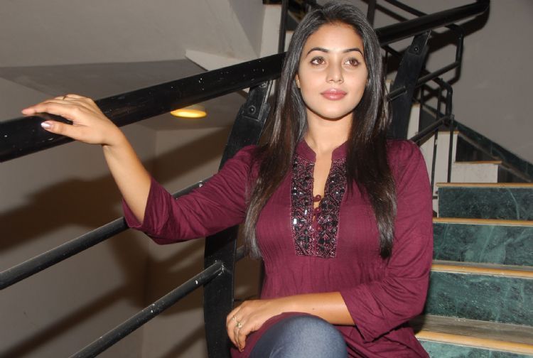 Poorna - heroine of Seema Tapakay poses for the shutter bugs at the launch of logo of the film on Friday. o stills