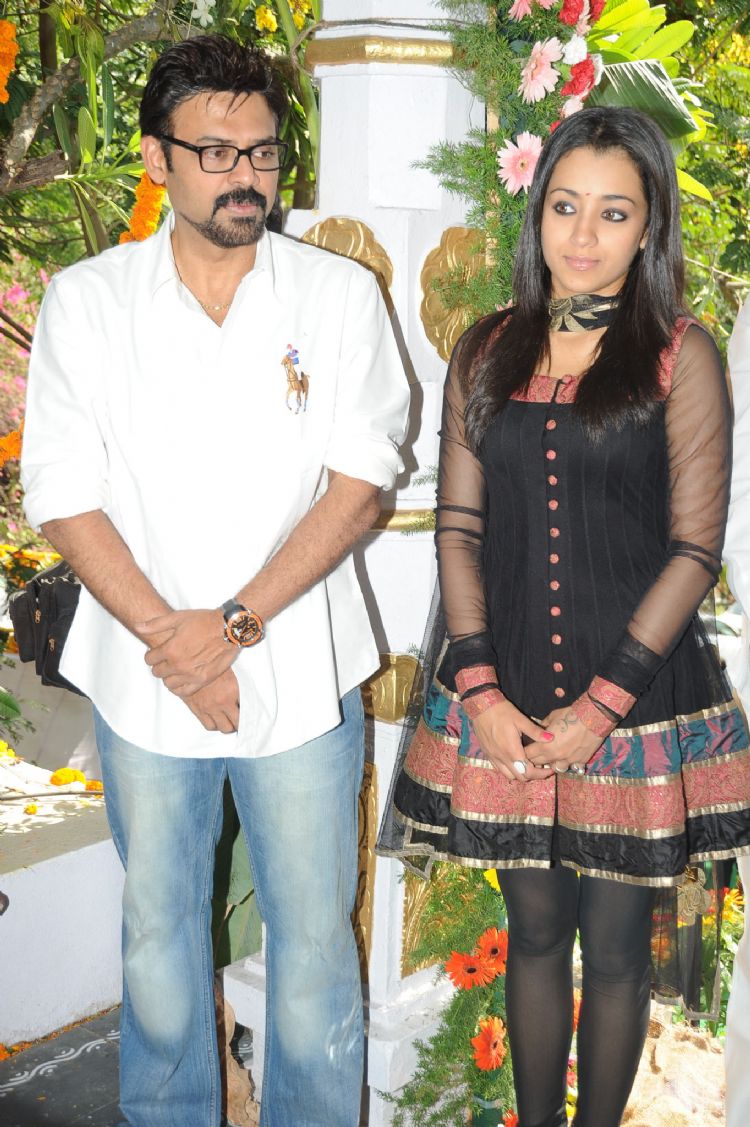 Victory Venkatesh, Trisha starrer new movie was launched today at Ramanaidu Studios, Hyderabad. Gopichand Malineni is the director of this film and Bellamkonda suresh produces it under Sai Ganesh Productions banner. Dr.D.Ramanaidu gave the clap for the first shot on Venkatesh and Trisha . Srinu Vaitla switched on the camera and V.V.Vinayak directed the first shot.